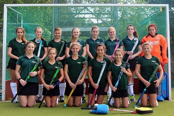 Stehend von links: Laura Schmitt, Nathalie Back, Jorid Schätzlein, Valerie Eckart, Paula Hummel, Lisa Fischer, Antonia Bandorf, Natalie Huhn, Victoria Nippert, Fiorella Röder, Johanna Griff, Clarissa Söllner, Betreuerin Sibylle Ebner, Kira Kurzawski, Trainer Florian Schmitt. Vorne von links: Monja Liebl, Anika Weber