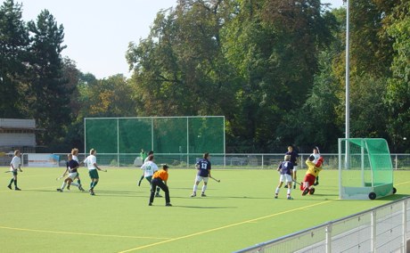 Knapp streft die Kugel nach einer Strafecke am oberen rechten Winkel vorbei.
