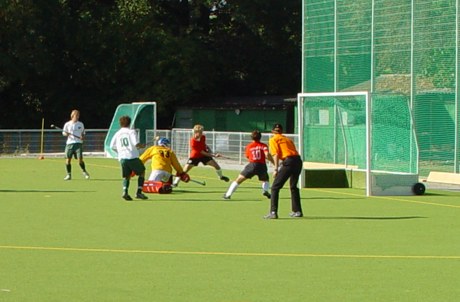 Szene aus dem 2. Halbfinale WHV (weiß) - Hamburg (rot):