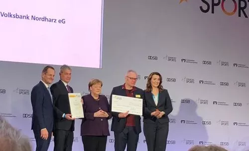 Der „Große Stern des Sports“ in Gold 2019 geht an den Verein Pfeffersport aus Berlin. Die Vertreter des Pankower Mehrspartenvereins nahmen den bedeutendsten Preis für Sportvereine in Deutschland in Verbindung mit einem Siegerscheck in Höhe von 10.000 Euro bei der feierlichen Verleihung am Dienstag (21. Januar) in der Berliner DZ BANK aus den Händen von Bundeskanzlerin Angela Merkel, Alfons Hörmann, Präsident des Deutschen Olympischen Sportbundes (DOSB), und Marija Kolak, Präsidentin des Bundesverbandes der Deutschen Volksbanken und Raiffeisenbanken (BVR), entgegen.