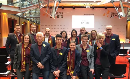 21.01.2020 - In Berlin wurde am heutigen Dienstag der "Große Stern des Sports" verliehen. Mit dabei auch der Goslarer Hockey-Club 00, der die regionale Auswahl der "Sterne des Sports" in Niedersachsen gewonnen hatte. Mit dem Wettbewerb wird das gesellschaftspolitisch wirksame Leistungsspektrum von Sportvereinen und deren besonderes ehrenamtliches Engagement gewürdigt. Er zeichnet entsprechende Tätigkeiten und Projekte aus. Bei der Preisverleihung in Berlin kam der Goslarer HC zwar nicht auf einen der ersten drei Plätze, doch allein die Teilnahme ist eine riesige Anerkennung für die dortige Entwicklungsarbeit. DHB-Präsidentin Carola Meyer und Maren Boye, DHB-Direktorin Sportentwicklung, waren unter den ersten Gratulanten vor Ort.
