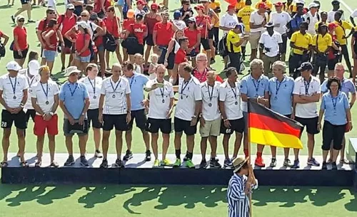 In einem kräftezehrenden Spiel um Platz 3 sichert sich die Mannschaft von Trainer Carsten Borstel mit einem intelligent herausgespielten 4:1 über England die Bronzemedaille. Nach dem Halbfinal-Aus gegen Holland zeigten die Masters M50 eine spielerisch hervorragende Leistung gegen die Engländer und bogen einen frühen 0:1-Rückstand durch Tore von Stefan Kloos, Andreas Dolge, Uli Mayer (2). Insbesondere die Schlussphase bot begeisterndes Hockey: Beim Stand von 1:4 aus englischer Sicht, setzte die Männer von der Insel acht Minuten vor Schluss alles auf eine Karte und nahmen den Torwart heraus. Deutschland, in dieser Phase durch Zeitstrafen teilweise mit zwei Spielern in Unterzahl, verteidigte das Spiel aber beherzt zu Ende. Fazit: Eine mehr als verdiente Bronzemedaille für eine Mannschaft, die sich mit großem individuellen spielerischen Potenzial auf und neben dem Platz als echtes Klasseteam bewiesen hat.