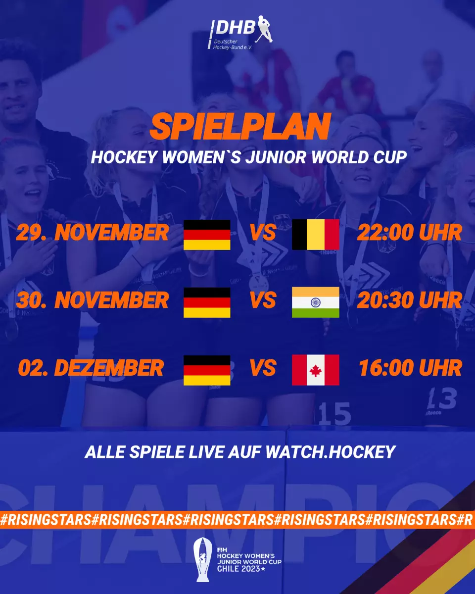 Die U21-Weltmeisterschaft Weiblich beginnt am 29. November 2023 in Chile. Den Anfang machen die Damen aus Südkorea und Simbabwe, bevor die deutsche Mannschaft von Bundestrainer Akim Bouchouchi ihr erstes Spiel gegen Belgien bestreitet. Alle Infos zur U21-WM Weiblich in Chile gibt es hier.