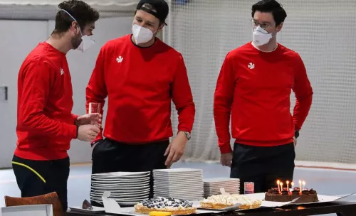 Wie sehr das besondere Konzept in die verschiedenen Bereiche hineinspielt, zeigen einige Beispiele. So wurden überall, außer auf dem Spielfeld und beim Essen von allen FFP2-Masken getragen. Bei einem Geburtstagsständchen beim Frühstück setzten alle Anwesenden zwischendrin ihre Masken wieder auf, um für Bundestrainer Rein van Eijk, der am Sonntag 33 Jahre alt wurde, zu singen. „Das ging so weit, dass natürlich auch die Kerzen nicht ausgepustet, sondern erst vom Kuchen runtergenommen und dann mit den Fingern gelöscht wurden“, erinnert sich Altenburg. Alle Besprechungen wurden mit 1,5-Meter-Abstand und Querlüftung abgehalten.