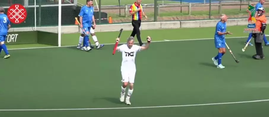 war in der ersten Halbzeit nicht gut. Torhüter Volker „Ente“ Geisler hielt überragend gegen die Schotten und wurde noch während des Spiels zum MVP bestimmt. Dennoch stand es 0:2 zur Halbzeit. In der beiden letzten Vierteln besann sich das O65 Team auf ihr Kontaktspiel, Vororientierung und hielt gegen die britische Härte dagegen. Zwei schön herausgespielte Tore von Adi Rehder und Hennes Jednat zum 2:2 waren die Folge. drei grüne und eine gelbe Karte steigerten nur die Kampfkraft. Mit diesem Unentschieden wurde der zweite Platz in der Gruppe C erreicht. Ein Wunschergebnis der Hockey-Mathematiker, da man so den vermeintlich favorisierten Holländern, Engländern und Australiern im Viertelfinale aus dem Weg gehen könnte. Vermeintlich; die nächsten Tage werden es zeigen.