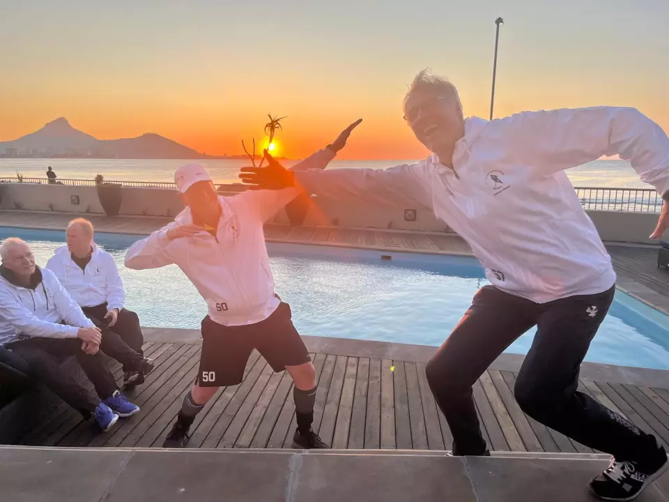 Ziemlich früh am Morgen war das O65 Team zum Spielbeginn um 8 Uhr hellwach, was am Morgenprogramm von Physio Iris König lag. Der „Büchsenöffner“ Ejaz Ahmad zeigte schon in der 3. Minute die Marschroute „mit Spaß kontakten“ auf. Auch die meisten der folgenden Tore von Cuddl Claussen, Klaus Geldsetzer, Adi Rheder (fünf) ergaben sich zwangsläufig aus der Spielanlage – zumeist aufgelegt vom Assist-König Hennes Jednat, der auch zum MVP bestimmt wurde. In der 34. Minuten konnte er sich endlich auch in das Scoreboard eintragen. Die zwei Gegentore in den letzten Minuten hoben die Stimmung bei den Franzosen. Torschütze und MVP Patrick Cossart kommentierte die deutsche Auszeichnung und den lautstarken Männergesang nach Spielende mit „der schönste Geburtstag in meinem Leben“ und da war es erst halb zehn in Kapstadt.