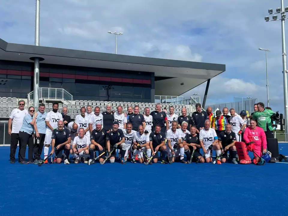 Die M 60 auf dem Weg nach Auckland Schon bei Bekanntgabe des Austragungsortes war klar, dass nicht alle Spieler diese weite Reise auf sich nehmen werden. Dies stellte das Trainerteam und die Mannschaftsführung vor eine große Aufgabe, die unerwartet neue Türen geöffnet hat. Auch wenn viele altgediente Masterspieler sich frühzeitig gegen eine Teilnahme ausgesprochen haben, fand sich schnell ein harter Kern, der die Reise nach Neuseeland fokussierte. Bei Lehrgängen in Bietigheim, Bonn und einem internationalen Turnier in Tilburg konnte sich das neu formierte Team schnell finden und zusammenwachsen. Gesundheitliche und verletzungsbedingte Ausfälle stellten das Team jedoch immer wieder vor neue Herausforderungen, die dazu führten, dass u. a. beim Regiocup in Lüneburg neue Masterspieler akquiriert wurden. Nach dem Lehrgang in Potsdam konnte dann endlich der finale Kader mit 18 Spielern benannt werden, der sich beim Abschlusslehrgang in Brüssel in Länderspielen gegen die Belgier den letzten Feinschliff holte. Mit vielen Masterneulingen startet das M60 Team nun gut vorbereitet in die WM in Auckland und freut sich auf viele unvergessliche Erlebnisse.