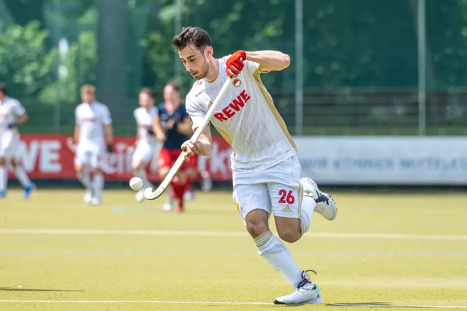 Die Herren von Rot-Weiss Köln haben voriges Jahr ihre zehnte Feldmeisterschaft perfekt gemacht, genau 50 Jahre nach der Premierenmeisterschaft 1972. Sollte der Titelverteidiger in Mannheim triumphieren, wäre es ein echter Titel-Hattrick nach den Siegen 2021 und 2022. Etwas bescheidener ist die Wimpelsammlung beim Kölner Halbfinalgegner. Der Harvestehuder THC wurde bislang vier Mal Meister (1996, 1998, 2000 und 2014). 2014 war auch die letzte Endspielteilnahme der Hanseaten, die damals Köln klar mit 5:1 schlugen. In der aktuellen Saison konnte jede Seite ein Spiel für sich entscheiden. Rot-Weiss gewann in der Hinrunde im Oktober mit 5:0 auf heimischer Anlage, der HTHC siegte im Rückspiel im April 2:1. Beide Teams waren auch im Vorjahr beim Final4 in Bonn im Halbfinale aufeinandergetroffen, damals siegte Köln mit 3:1 (Foto). Seinen Weg zur Endrunde 2023 bahnte sich Köln als Staffelsieger und mit 2:1-Siegen im Viertelfinale gegen den Berliner HC. Der HTHC war Staffeldritter der Staffel B und schaltete im Play-off mit 2:1-Siegen den Vorjahresvizemeister Hamburger Polo Club aus.