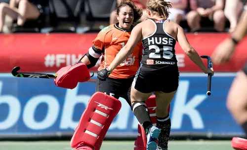 Siegtorschützin Viktoria Huse: „Das war eine Mega-Willensleistung von uns, wir haben uns da krass zurückgekämpft. Die erste Halbzeit war sehr schleppend, aber wir sind dann immer besser ins Spiel gekommen. In der zweiten Halbzeit sind wir richtig gut ins Spiel gekommen, hatten direkt das Tor und dann die Ecke, mit der wir fast in Führung gehen. Hinten haben wir richtig gut verteidigt und denen kaum Chancen gegeben. Beim Shootout wusste ich, dass wir das gewinnen. Ich war mir sicher, dass wir hinten drin eine Weltklasse-Torhüterin haben und mega-starke Schützen. Nach dem Spiel, es war super heiß und super anstrengend, sind wir natürlich richtig im Eimer, aber die Freude überwiegt. Und da sind die einen oder anderen Blessuren auch egal.“