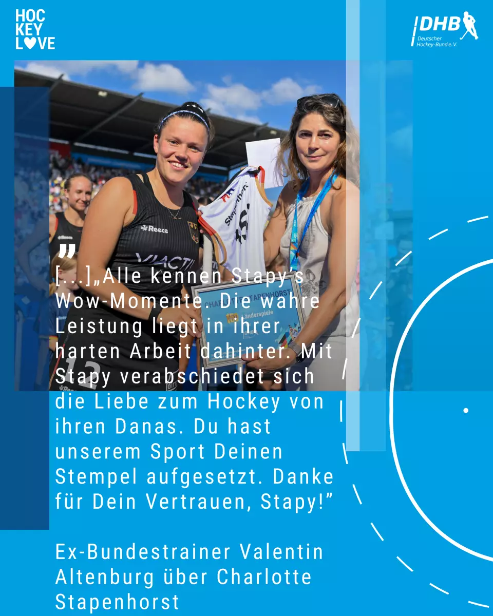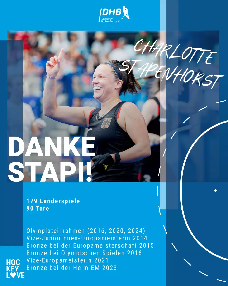 Charlotte "Stapi" Stapenhorst wird als eine der gefährlichsten Stürmerinnen der deutschen Hockeygeschichte in die Geschichtsbücher eingehen. Die 29-jährige Topstürmerin der DANAS beendet ihre Karriere und kann auf zahlreiche Tore für die deutsche Nationalmannschaft zurückblicken.
