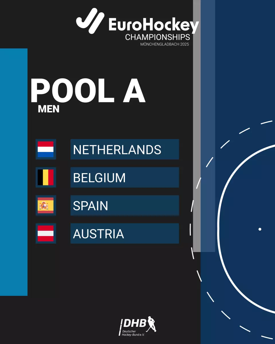 Favoritensterben in der Gruppe A der Herren? Mit dem amtierenden Olympiasieger Niederlande, dem Vize-Weltmeister Belgien und dem überraschend starken Olympia-Vierten Spanien garantiert die Gruppe A der Herren Spitzenspiele und absolutes Weltklasse-Hockey. Österreich wird in dieser Gruppe über sich hinauswachsen müssen, um eine Chance gegen die absoluten Top-Teams Europas zu haben.