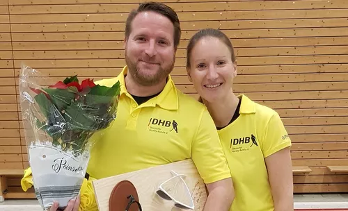 02.12.2019 - Der Schiedsrichter- und Regelausschuss des DHB kann bereits am ersten Wochenende der neuen Hallensaison mehrere Jubiläumsspiele vermelden. Der Potsdamer René Pleißner konnte seinen 400. Einsatz in der höchsten Spielklasse an der Seite von Michelle Meister beim Spiel der 1. Bundesliga Herren zischen den Zehlendorfer Wespen und dem Osternienburger HC feiern.