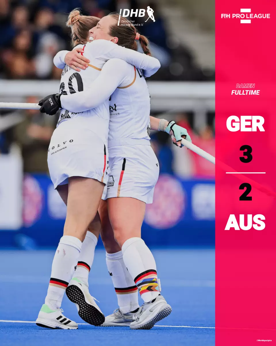 Die deutschen Hockey-Damen haben am Dienstagabend bei der FIH Pro League in London ein historisches Erfolgserlebnis gefeiert. Das 3:2 gegen Australien war der erste Sieg gegen die Nation seit September 2010. Die Tore erzielten Charlotte Staphorst, Nike Lorenz und Lisa Nolte.