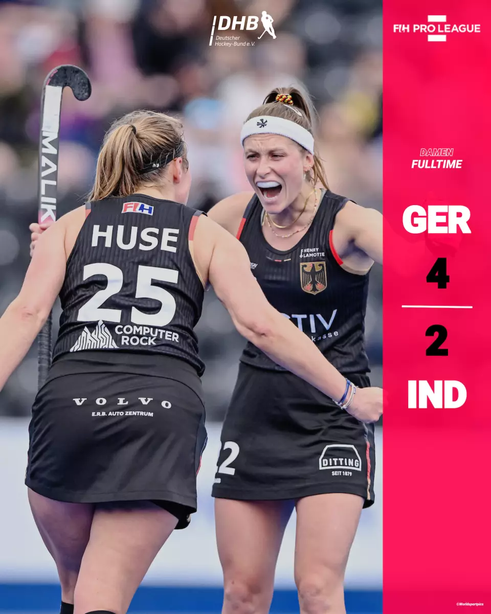 Die DANAS haben bei der FIH Pro League in London einen überzeugenden 3:1-Sieg über Indien gefeiert. Die Treffer für das Team erzielten Charlotte Stapenhorst, Sonja Zimmermann und Nike Lorenz.