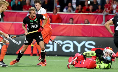 Das DHB-Team spielte geduldig Ballbesitz-Hockey zu Beginn des dritten Viertels, Rühr hatte eine gute Chance links im Kreis, traf den Ball aber nicht voll. Dann gab es die erste Ecke für Oranje (34.), die Timur Oruz bärenstark ablief. Es war weiterhin ein Match absolut auf Augenhöhe. Beide Teams lauerten auf Fehler des Gegners, um sie zu bestrafen. Dan Nguyen wurde bei einem Schussversuch im Strafraum umgerannt, aber es gab keine Ecke dafür (38.).
