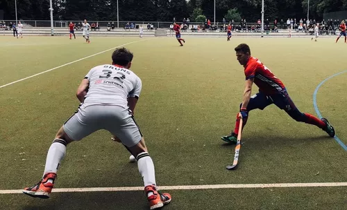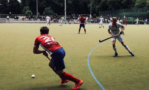 Und die reagierten prompt nach der Pause. Christopher Rühr zwang George Pinner im britischen Tor mit einem harten Schlenzer zur Glanzparade und Niklas Bruns drosch den Abpraller zentral aus fünf Metern unter die Latte zum 4:4 (31.). Es ging danach hin und her. Beide Teams taten offensiv viel, holten sich Chancen. Pinner rettete in höchster Not nach Rühr-Flanke vor dem einblockbereiten Miltkau (38.). Mehr und mehr übernahmen jetzt die HONAMAS wieder die Kontrolle. Pinner war aber ein sehr aufmerksamer Keeper für die Briten und entschärfte zwei gute Chancen aus kurzer Distanz recht souverän (42./43.), so dass es beim 4:4 zum Ende des dritten Viertels blieb.