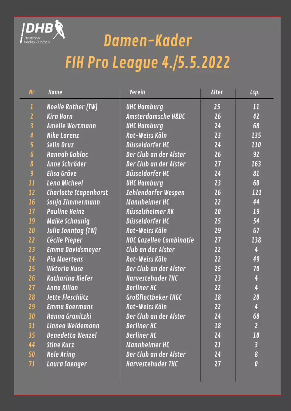 Die deutschen Hockey-Fans können sich auf zwei volle Hockey-Spieltage der Danas und Honamas in Mönchengladbach freuen. Beide Mannschaften treffen im Rahmen der FIH Pro League am 4. und 5. Mai jeweils auf die Auswahl aus England.