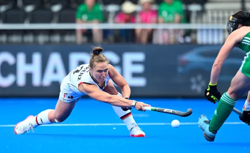 Nächster Halt: K.o.-Spiele! Deutschland schlägt Irland mit 3:0. Die Danas bestätigen ihre gute Form aus der Gruppenphase und gewinnen ihr letztes Gruppenspiel. Damit belegen sie Platz 2 und müssen im cross-over gegen Südafrika spielen. Wir haben die besten Bilder des Spiels für Euch zusammengestellt.