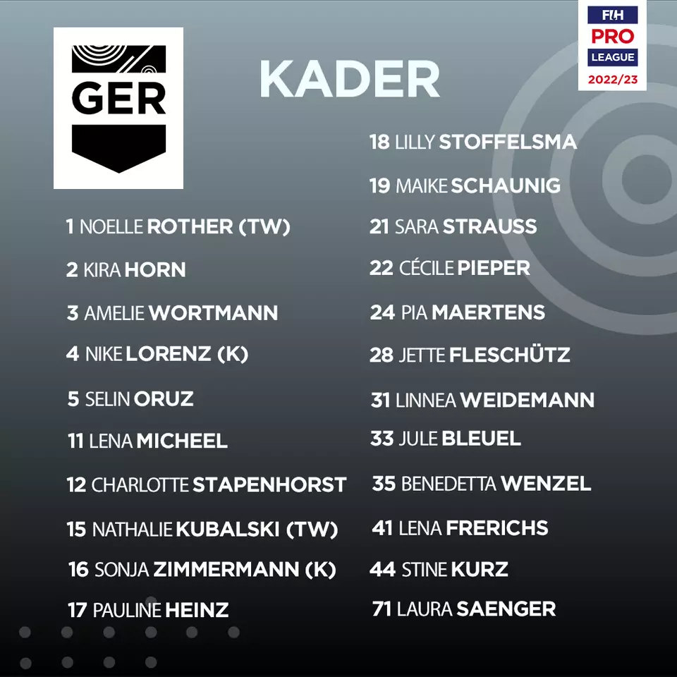 Der erste FIH Pro League Kader der Danas weist neben alt bekannten Gesichtern, wie Horn, Lorenz und Zimmermann, einige junge Talente auf. Fleschütz, Weidemann, Frerichs und Bleuel gewannen zuletzt die u21 Europameisterschaft und wurden zusammen mit Stine Kurz zur Juniorsportler-Mannschaft des Jahres gewählt. Anne Schröder, Julia Sonntag und Victoria Huse stehen den Danas aus beruflichen Gründen bis Ende des Jahres nicht zur Verfügung.