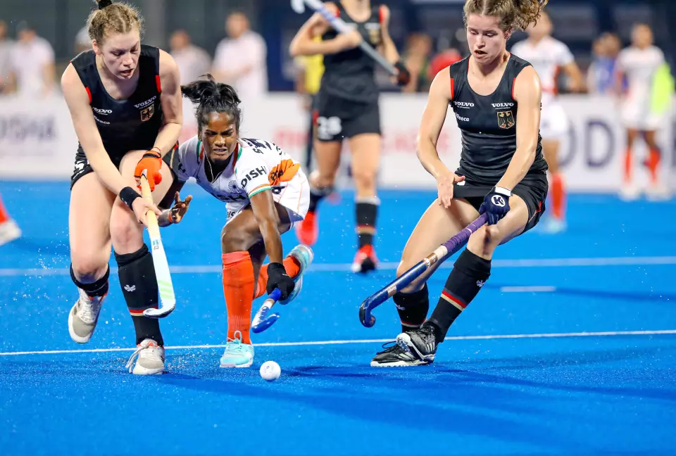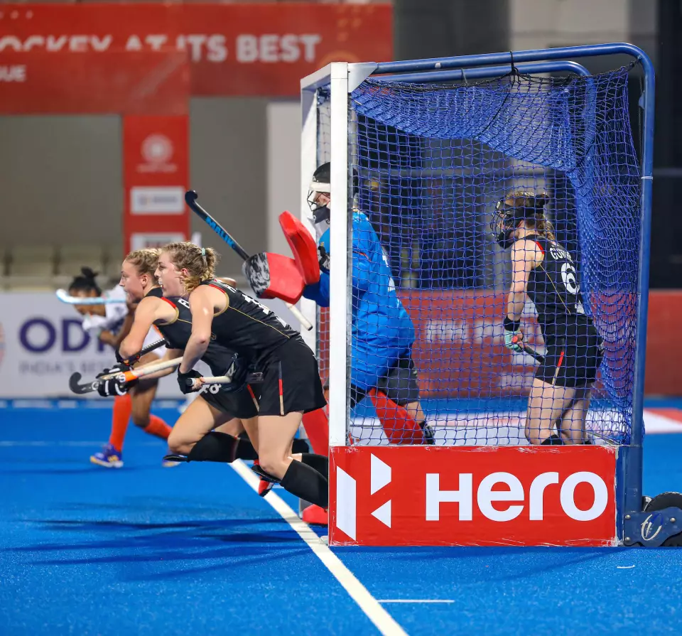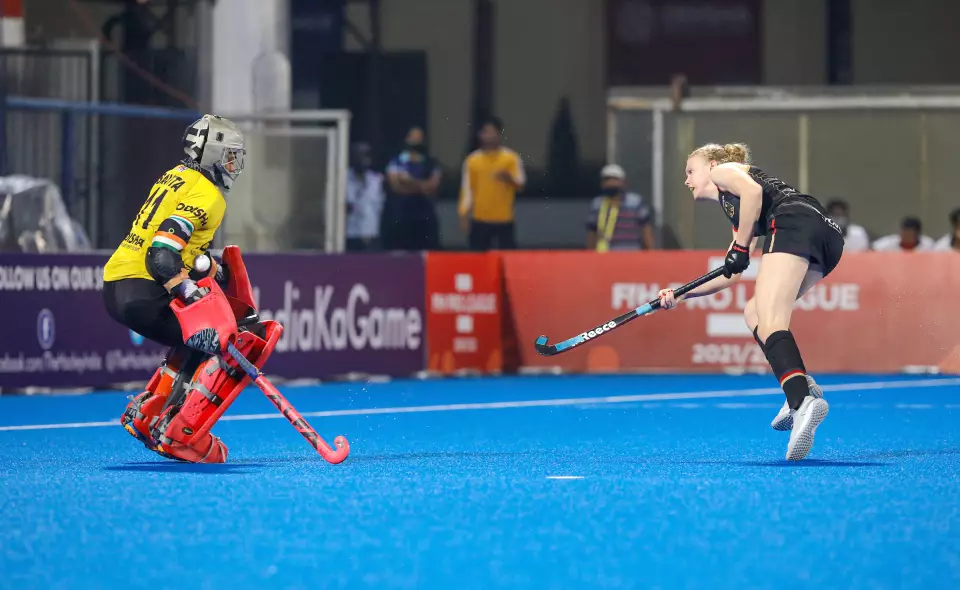 Die Danas verteidigen eine Strafecke der Inderinnen.