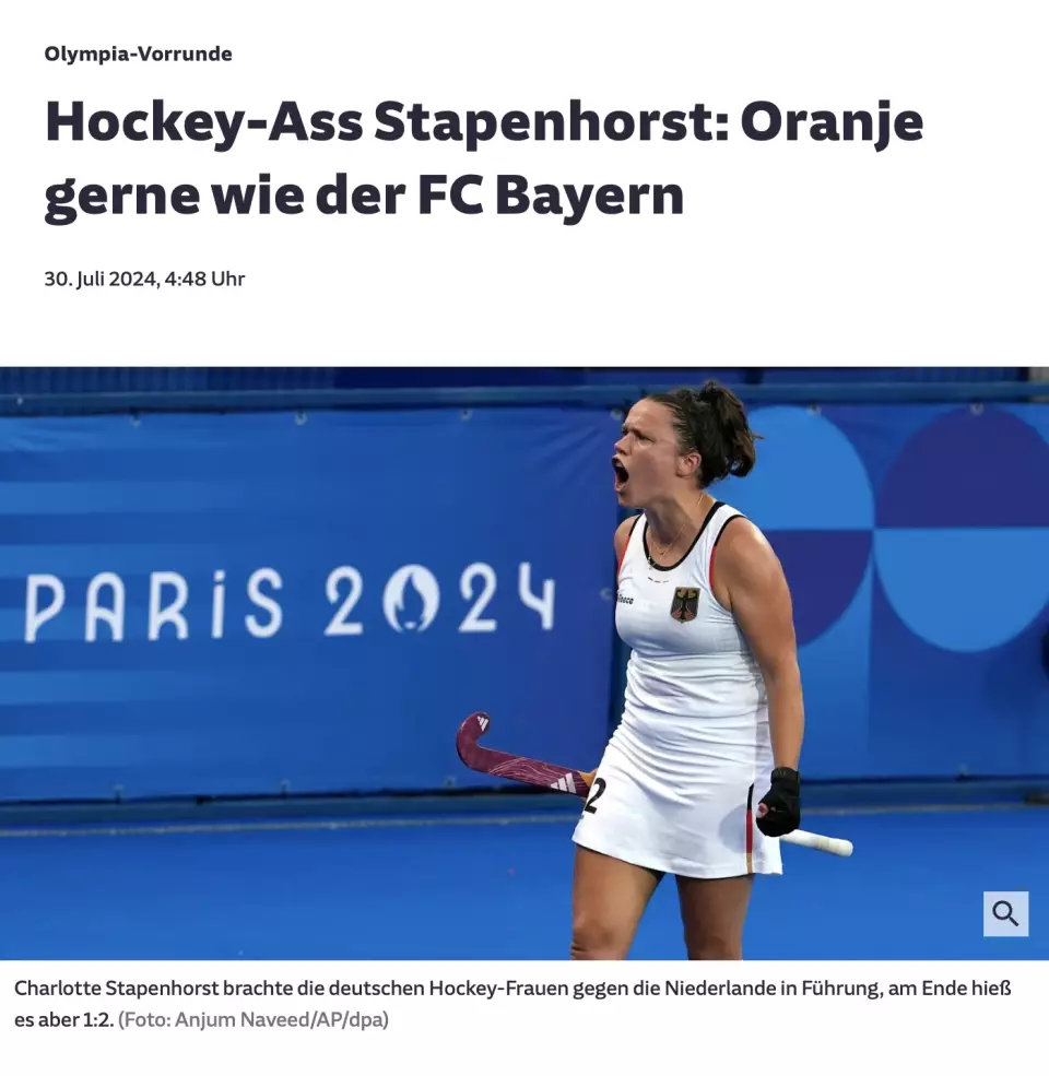 Süddeutsche (dpa): Hockey-Ass Stapenhorst: Oranje gerne wie der FC Bayern