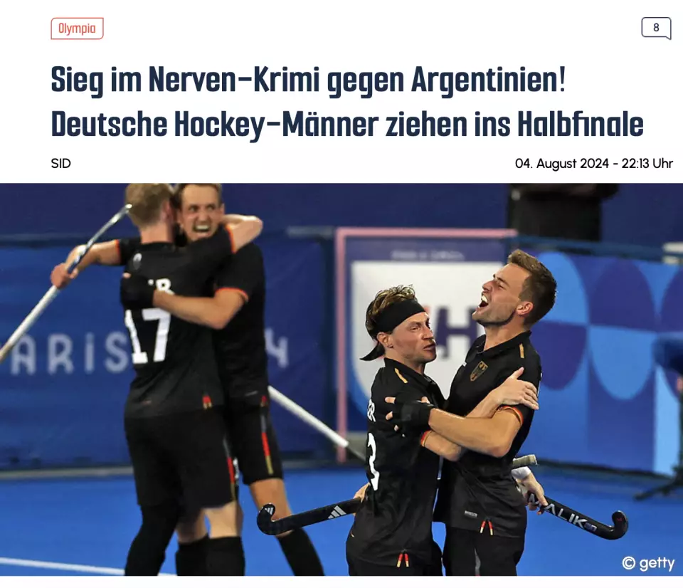 T-Online (SID): "Unfassbar geil" – Deutschland erreicht Hockey-Halbfinale