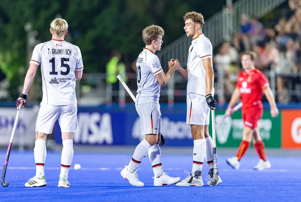Früh im letzten Viertel sah Thies Prinz die Gelbe Karte und Deutschland musste in eine fünfminütige Unterzahl. Trotzdem überstanden die Honamas diese fünf Minuten ohne einen Gegentreffer und stürmten anschließend wieder Richtung belgisches Tor. Nach einem sehenswerten Dribbling von Mats Grambusch gab es sechs Minuten vor Schluss eine weitere Strafecke für Deutschland. Wieder hielt Vanasch die Kugel von Peillat. Deutschland wollte den Sieg jetzt und erkämpfte sich wenige Sekunden darauf einen 7-Meter. Tom Grambusch verwandelte ihn routiniert und die Honamas gingen mit 3:2 in Führung. Die Führung war mittlerweile verdient, denn die größeren Spielanteile hatte das Team von André Henning. Die deutsche Mannschaft spielte die verbleibende Zeit souverän herunter und schlug den amtierenden Olympiasieger mit 3:2.