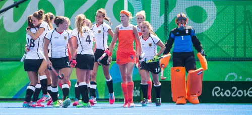 17.08.2016 - Im wohl besten Spiel einer deutschen Damenmannschaft seit dem Olympiasieg 2004 hat das deutsche Team das Halbfinale der Olympischen Spiele in Rio mit viel Pech erst in der Verlängerung des Penaltyschießens verloren. Die Deutschen führten früh durch einen Eckennachschuss von Lisa Marie Schütze, kassierten aber den Ausgleich durch Maartje Paumens Ecke kurz vor der Halbzeit. Mit großartigem Kampf und trotz doppelter Unterzahl in der Schlussphase hatte das Ergebnis auch beim Schlusspfiff Bestand. Und dann hielt in einem Duell zweier Weltklasse-Torfrauen Joice Sombroek leider einen Penalty mehr als Kristina Reynolds, die drei Penaltys abwehrte. So geht es am Freitag um 17 Uhr deutscher Zeit nun um Bronze fürs DHB-Team gegen Neuseeland, das sein Halbfinale mit 3:0 gegen Großbritannien verlor.