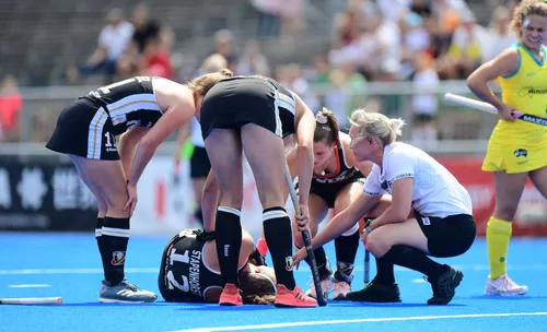 Ein denkbar unglücklicher Start also, den das DHB-Team erstmal verdauen musste. Charlotte Stapenhorst hatte die beste Chance dann in der 10.Minute, als ihr der Rückhandschuss aber misslang und deutlich drüber ging. Nur eine Minute später war es erneut die UHCerin, deren Vorhandschlag gerade noch abgeblockt wurde. Die Deutschen jetzt deutlich besser im Spiel. In der 12. Minute blieb Stapenhorst im Vollsprint auf den Kreis an einer Verteidigerin hängen und verletzte sich am Knie, musste draußen behandelt werden und kam nicht mehr zurück.