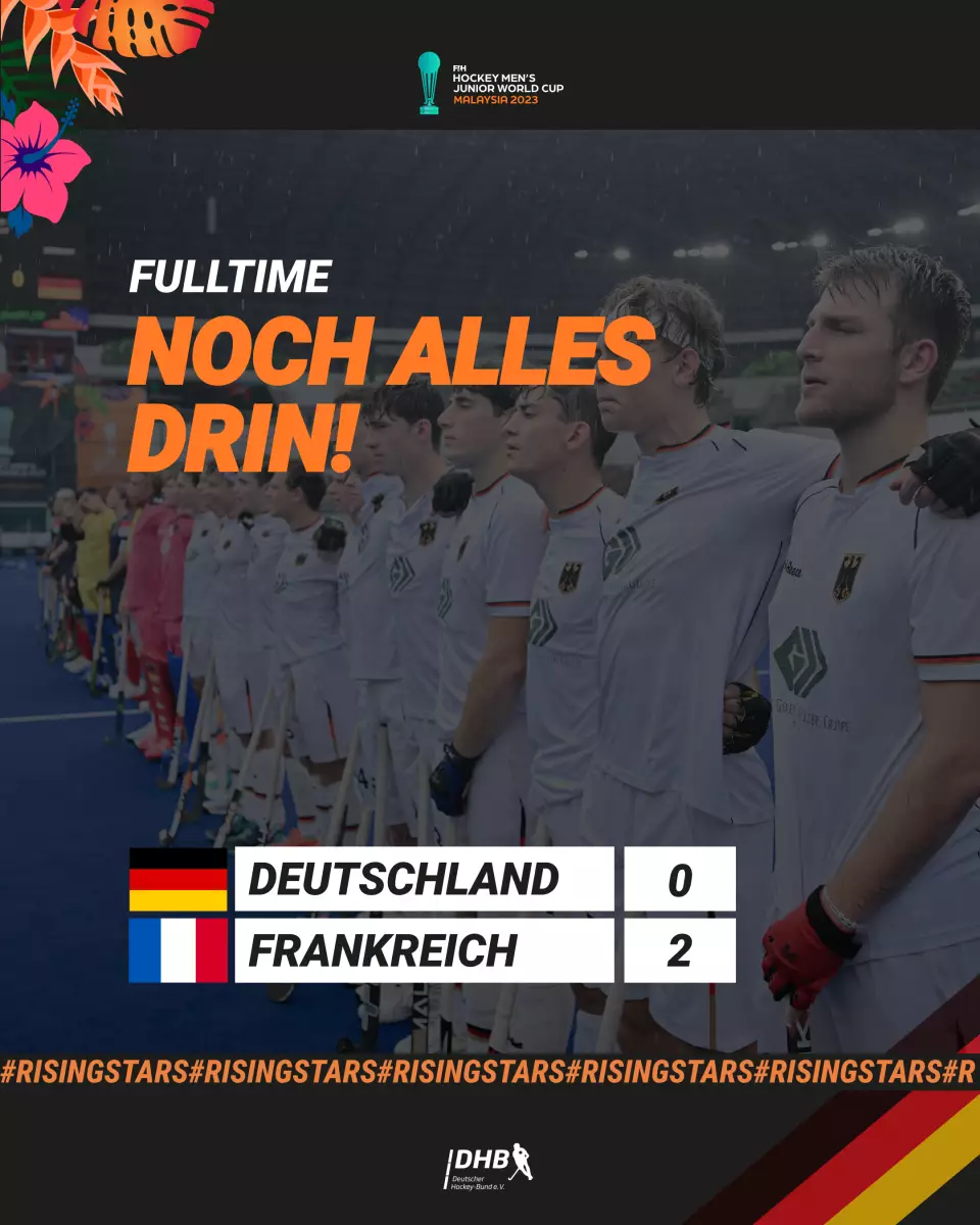 Im zweiten Gruppenspiel des Men's Junior World Cups 2023 in Malaysia hat das Team von Nationaltrainer Rein van Eijk gegen Frankreich verloren. Über 60 Minuten konnte man sich nur wenige Torchancen gegen die stark aufspielenden Franzosen erspielen. Das letzte Gruppenspiel der U21 Männlich findet Freitagnacht um 03:00 Uhr deutscher Zeit gegen Ägypten statt.