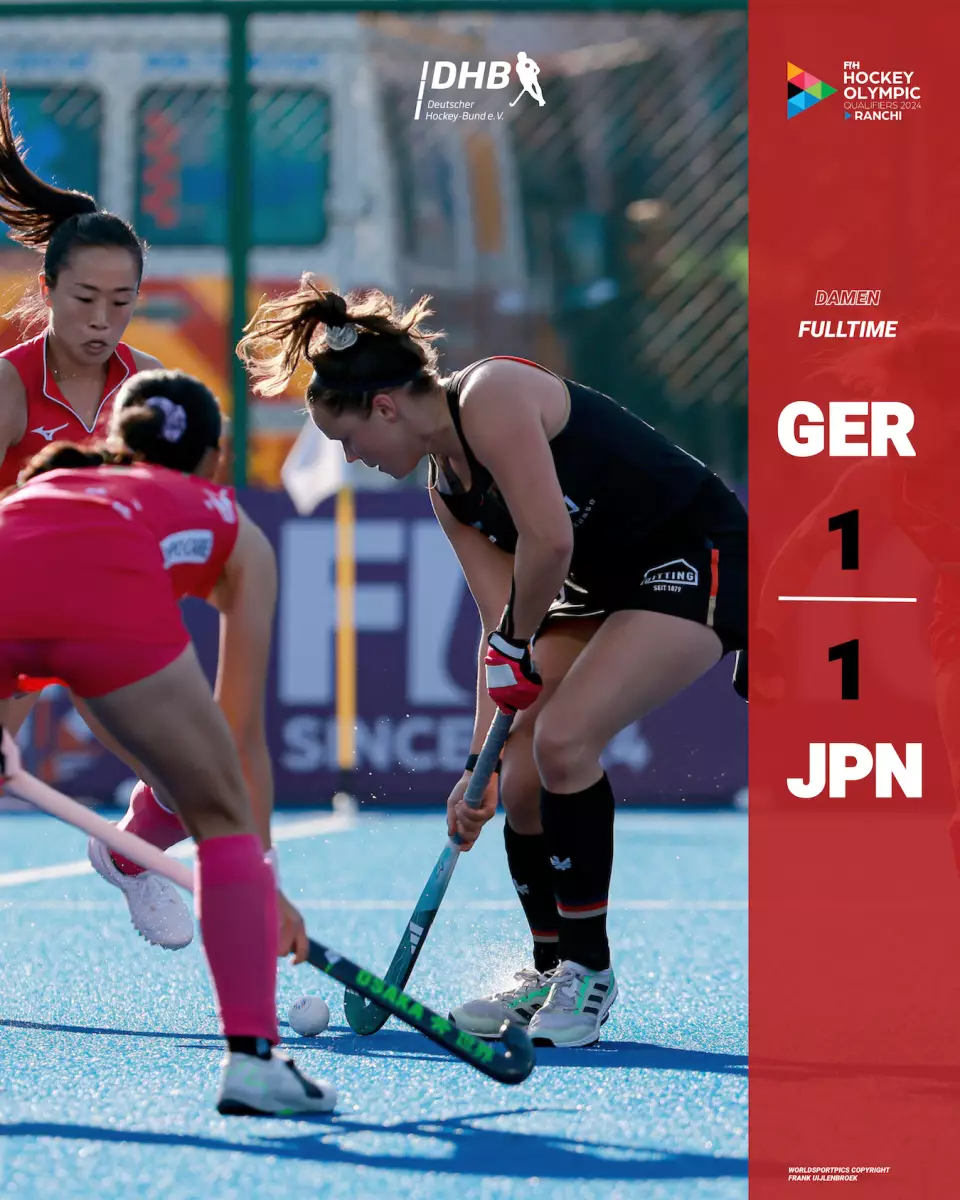 14 Strafecken auf deutscher Seite reichten nicht für den zweiten Sieg in der Olympiaqualifikation. Lisa Noltes Tor in der 35. Minute brachte die deutsche Führung, mit ihrer einzigen Strafecke im Spiel konnten die Japanerinnen allerdings in der 45. Minute ausgleichen. Beim 1:1 blieb es bis zum Schluss. Die deutschen Damen wollen sich mit einem Sieg im letzten Gruppenspiel gegen Tschechien am Dienstag, 16. Januar, 07:30 deutscher Zeit, den Gruppensieg in Ranchi holen.