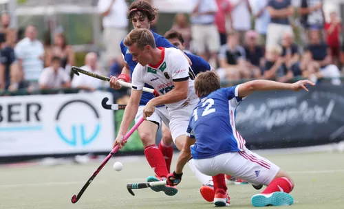 26.07.2018 - Mit einer klaren Steigerung nach der Pause kam Gastgeber Deutschland beim real FOUR NATIONS CUP in Düsseldorf zu einem hohen Auftaktsieg gegen Frankreich. Das DHB-Team führte vor 750 Zuschauern zur Pause zwar 1:0, hatte aber seine Probleme mit den schnellen, aggressiven Franzosen. Nach dem Wechsel erhöhten die HONAMAS kurzfristig das Tempo und es dauerte drei Minuten, ehe Timm Herzbruch seinen lupenreinen Hattrick zum 3:0 vollendete. Lukas Windfeder ließ bald das 4:0 folgen und ein Doppelpack von Niklas Wellen komplettierte das halbe Dutzend zu Beginn des Schlussviertels, ehe Frankreich mit der Schlussecke zum Ehrentreffer kam. Am Freitagabend geht es nun um 19.15 Uhr gegen Irland weiter, das sein Match zuvor gegen Olympiasieger Argentinien 1:3 verlor.