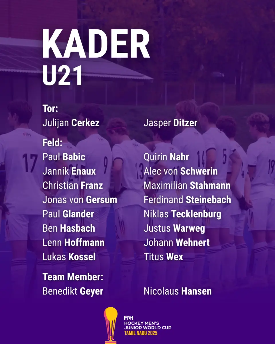 Am Donnerstag haben mU21-Bundestrainer Johannes Schmitz und Mirko Stenzel den mU21-Kader für die WM in Indien bekanntgegeben. Mit dabei sind auch drei Titelträger vom Triumph bei der WM 2023 in Malaysia.
