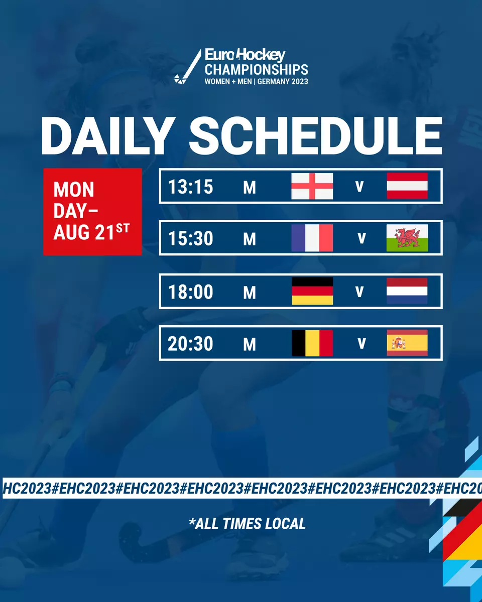 Viermal Herrenhockey vom Feinsten steht heute auf dem Programm. England muss nach der Niederlage gegen Belgien im zweiten Gruppenspiel gegen die ebenfalls unter Zugzwang stehenden Österreicher punkten. Frankreich trifft auf das Überraschungsteam aus Wales und Deutschland spielt im Klassiker gegen die Niederlande. Das letzte Spiel des Tages bestreiten Belgien und Spanien.