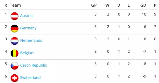 | 18:15 | Österreich vs. Belgien | 6:2 |