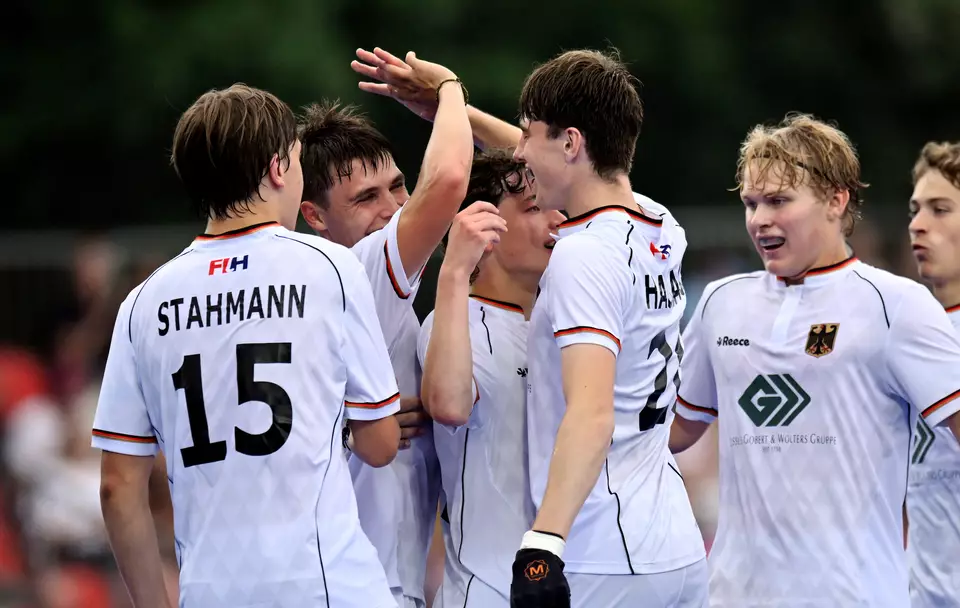 09.07.2023 - Mit einem 2:0 (1:0)-Sieg über Außenseiter Schottland sind die deutschen Jungen erfolgreich in die Heim-Europameisterschaft in Krefeld gestartet. Auch von einer einstündigen Gewitterunterbrechung ließ sich das DHB-Team von Cheftrainer Peter Maschke am frühen Sonntagabend nicht aufhalten. „Das war ein gelungener Auftakt, auch wenn das Ergebnis hätte deutlich höher können“, sagte Maschke.