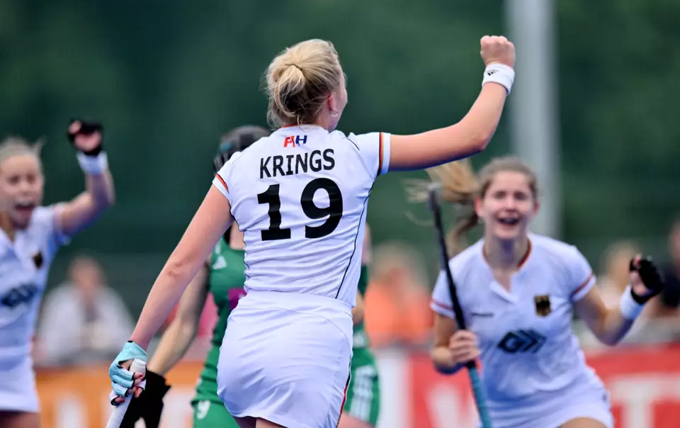 15.07.2023 – Gut vier Stunden nach den Jungen zogen auch die deutschen Mädchen bei der U18-Europameisterschaft in Krefeld ins Finale ein. Der 2:1 (1:0)-Halbfinalsieg über Spanien war ein hart erkämpfter Erfolg, bei dem sich Deutschland das Leben teils selber schwer machte. Im Endspiel trifft die Mannschaft von Bundestrainer Nicklas Benecke am Sonntag (16.45 Uhr) auf Belgien, das im ersten Halbfinale England mit 3:1 ausgeschaltet hatte. Beim ersten Duell mit den Belgierinnen hatte sich die DHB-Auswahl in der Vorrunde 0:0 getrennt.
