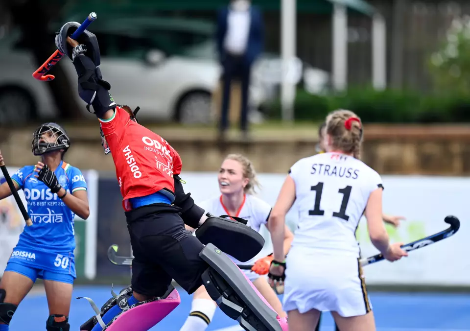 Die erste sehenswerte Szene im zweiten Viertel kreierte Carlotta Sippel nach einem klasse Solo über die Grundlinie. Im direkten Gegenzug wurden die Inderinnen wieder über eine kurze Ecke gefährlich, die Emily Günther aber auf der Linie gerade noch so entschärfen konnte. Auch die Ecken vier und fünf konnten die Deutschen nicht verwerten. Neumann musste, nachdem sie bei einem Abschlag der Inderinnen den Ball auf die Hand geschlagen bekommen hatte, verletzt ausgewechselt werden. Kurz darauf zog Jette Fleschütz die nächste kurze Ecke, die in einem 7-Meter für Deutschland mündete. Diesen parierte die indische Torhüterin. In Minute 25 verwandelte Indien eine kurze Ecke per Stecher zum 2:0. Kurz vor Ende der ersten Halbzeit bekam Lisa Nolte eine grüne Karte für Stockschlagen. Deutschland hatte sich bis hierhin mehr Chancen erarbeitet, lag aber dennoch zur Halbzeit unglücklich hinten.