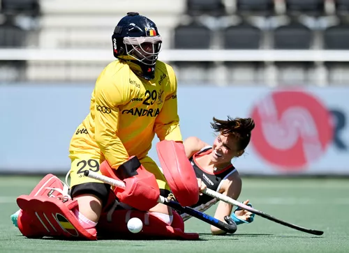 So ging es mit einem 0:0 in die zweite Hälfte. Dort legten die Deutschen gut los. In Überzahl, als vanden Borre auf der Strafbank saß, holte Amelie Wortmann die dritte Ecke, die aber von den Belgierinnen mit vereinten Kräften auch gegen zwei Nachschüsse geklärt wurde. Doch Stapenhorst holte kurz darauf, Belgien war wieder komplett, Ecke Nummer vier, die Sonja Zimmermann ganz knapp rechtsneben das Tor setzte (34.). Ein starker Ballgewinn von Wortmann brachte dann Stapenhorst in Schussposition, doch den halbhohen Schlag holte Sotgui mit einer Spitzenparade aus dem bedrohten langen Eck.