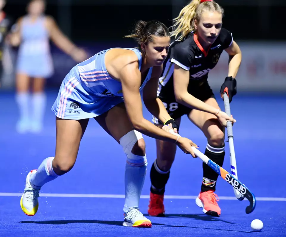 Das Viertelfinale zwischen Argentinien und Deutschland startete mit wenig Offensivaktionen. Deutschland presste in der Verteidigung hoch, während die Argentinierinnen eher verhalten gegen den Ball agierten. Erst nach fünf Minuten gab es den ersten Schuss in Richtung Tor. In der achten Spielminute ergab sich die erste Chance für die deutsche Mannschaft, die sich von diesem Zeitpunkt an leichte Vorteile im Spiel erkämpfte. Der Ball lief besser in den Reihen der Deutschen. In der zehnten Minute gelang ihnen ein fantastisch gespielter Angriff, der zu einer kurzen Ecke führte. Carlotta Sippel brachte die Kugel aufs Tor. Der abgefälschte Ball landete direkt vor den Füßen von Pauline Heinz, die zum 1:0 für Deutschland traf. Nur drei Minuten später gab es nach einem tollen Solo von Sofia Cairo und einem harten Foul der Deutschen einen 7-Meter für Argentinien. Torwärtin Mali Wichmann verhinderte aber den direkten Ausgleich. Mit einer sensationellen Parade hielt sie den Ball in der unteren rechten Ecke. Die U21 von Deutschland ging mit einer 1:0 Führung, gegen bis dahin ungeschlagene Argentinierinnen, in die Viertelpause.
