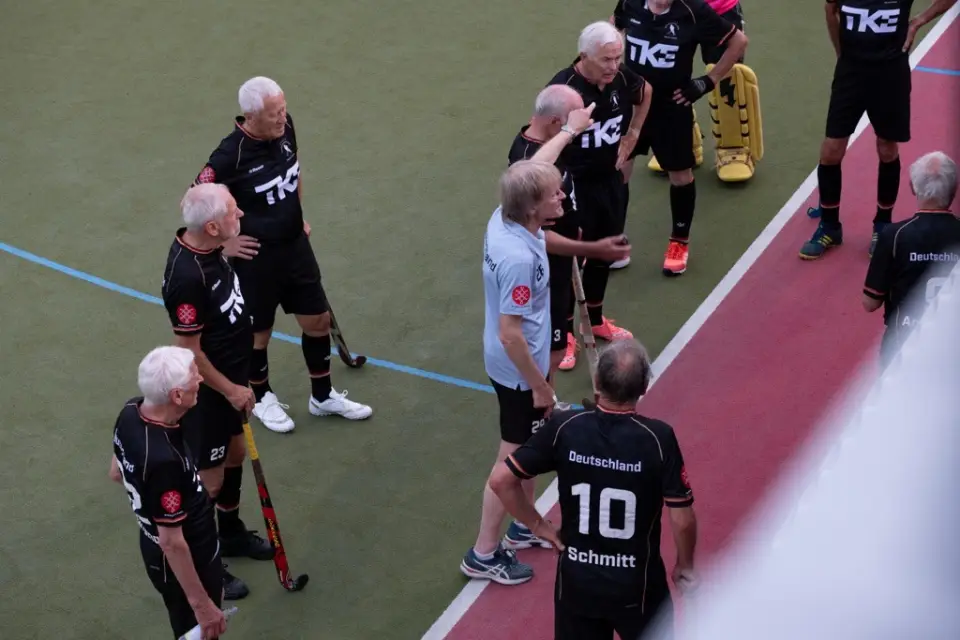Das Auftaktspiel des deutschen Nationalteams in der neuen Altersklasse M80 geht unglücklich mit 3:1 gegen England verloren. Über die volle Spielzeit von 4x15 Minuten zeigten hier die mindestens 80 jährigen Herren Hockey auf höchstem Niveau.