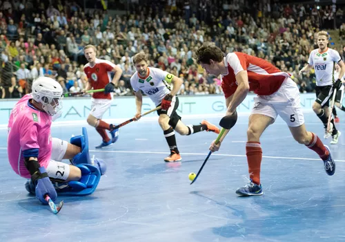 11.02.2018 - Die deutschen Hockey-Herren haben den WM-Titel im eigenen Land denkbar knapp verpasst. Das Team von Bundestrainer Stefan Kermas lieferte sich im Finale in der mit 8300 Zuschauern erneut ausverkauften Berliner Max-Schmeling-Halle ein packendes Duell mit Europameister Österreich, das am Ende Michael Körper für die Alpenrepublik entschied. Der Torjäger brachte sein Team erst mit zwei späten Treffern in den Shootout und verwandelte dann dort den letztlich entscheidenden Penalty zum 6:5 (3:3, 1:2)-Sieg.