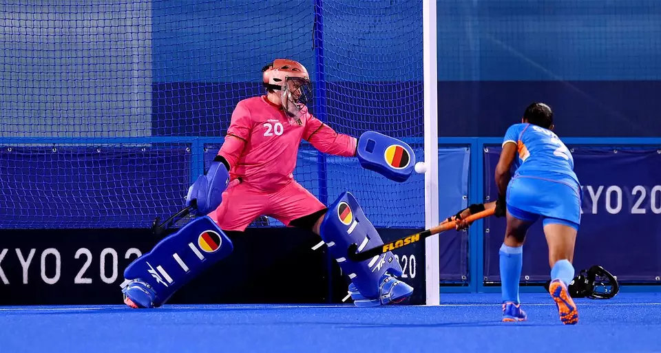 Die Deutschen weiter mit ruhigem, kontrolliertem Aufbau. In der 32. Minute gab es die erste Ecke für Indien, nach Fuß von Horn. Da ging der Schuss auf der Linie hoch an Lisa Altenburgs Oberschenkel. Sarah Wilson pfiff das zurecht als gefährlich raus, aber Rani fragte nach der Videoentscheidung für einen Siebenmeter. Erneut war es die Belgierin Delforge, die schon bei der EM mehrfach gegen die Deutschen falsch entschieden hatte, die den Pfiff von Wilson kassierte und Siebenmeter gab. Zum Glück zeigte Juli Sonntag eine ganz starke Parade gegen Gurjit Kaur und lenkte den Ball an den Pfosten.