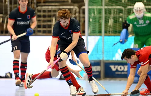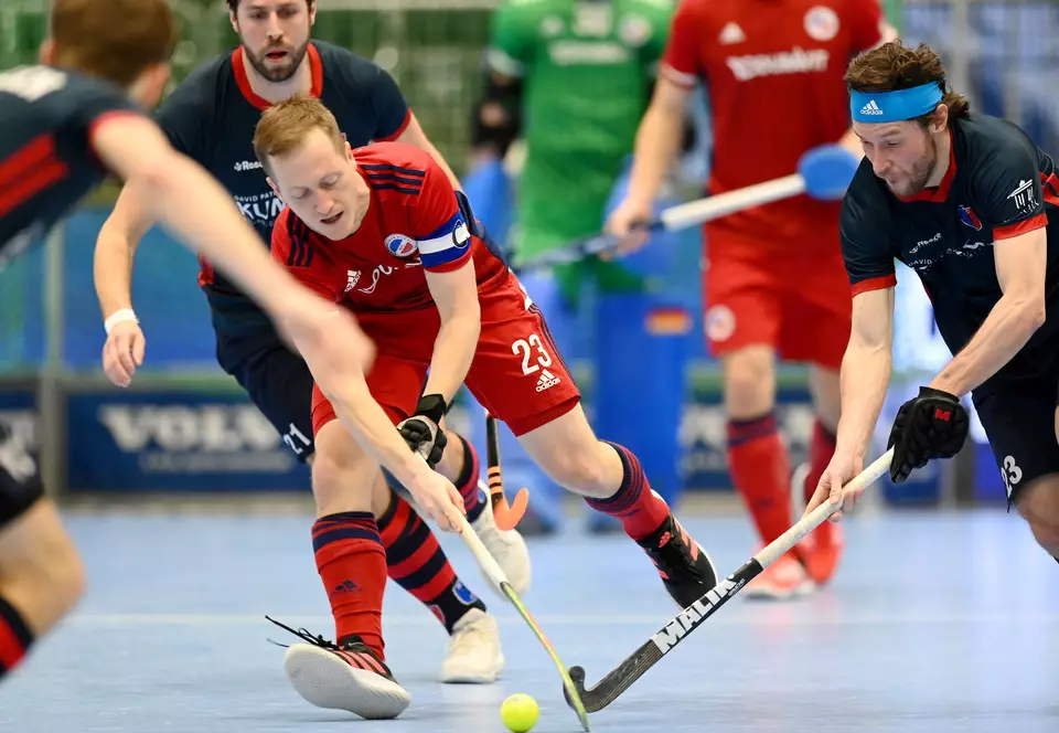 Das erste Viertel gehörte einzig dem Mannheimer HC. Das Team von Andreu Enrich war fokussierter, griffiger als die Berliner. Justus Weigand traf schon in der 2. Minute völlig frei vom linken Kreisrand ins obere rechte Eck zur Führung. Und Raphael Hartkopf düpierte Mika Schleu nur eine Minute später mit einem Rückhand-Schnicker durch die Beine zum 2:0. Und es ging so weiter: Die erste Ecke des MHC war ebenfalls drin, diesmal tunnelte Zmyslony Schleu (5.). Der Berliner Keeper konnte sich kurz darauf aber auch erstmals auszeichnen, als er eine Ecke auf die Mittelablage stark hielt (7.).
