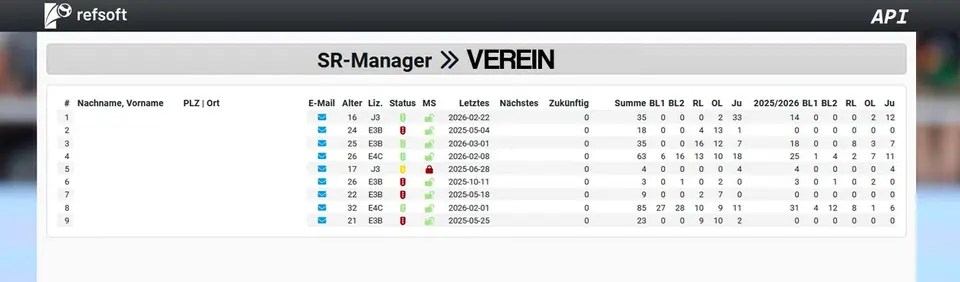 Ein übersichtliches Ampelsystem zeigt dabei auf einen Blick, ob die Anzahl der geleiteten Partien für eine Anrechenbarkeit als Verbandsschiedsrichter*in bereits ausreicht oder ob weitere Einsätze erforderlich sind.